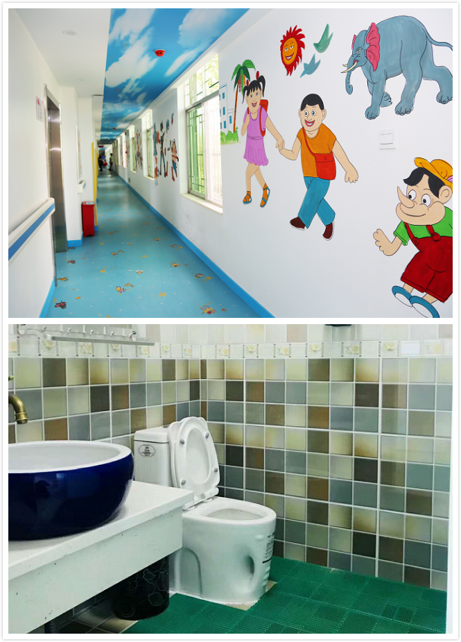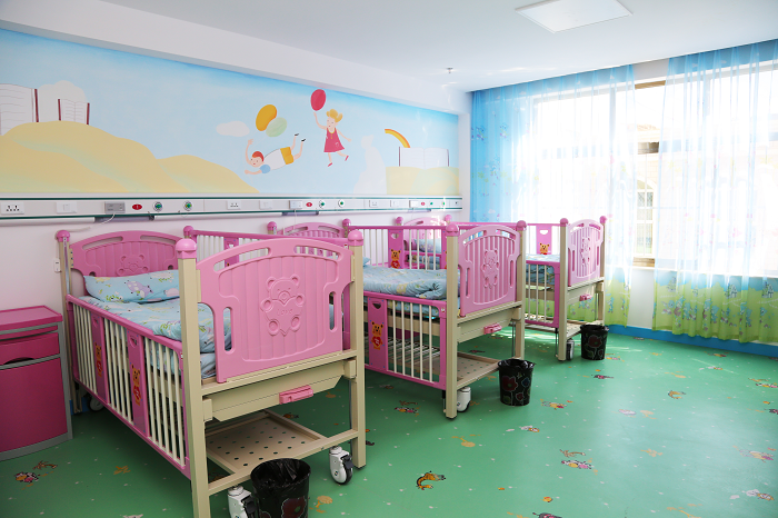 病房采用目前最先進的兒童病床,兒童專用衛(wèi)生間。房間和走廊增加了許多孩子們喜歡的卡通元素,設(shè)置了專用的兒童游樂區(qū),配備了各種玩具,使病房變身為孩子們的游樂園。