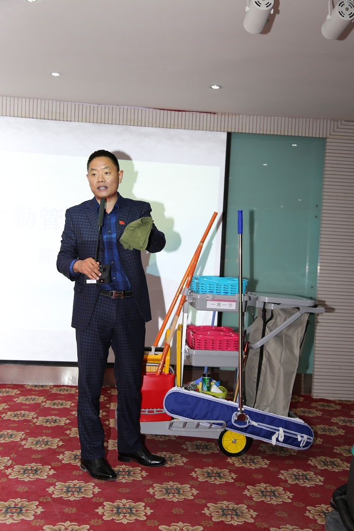 為了讓大家快速地掌握對新型保潔工具的運用,陳總在現(xiàn)場直觀地講解了保潔工具車的配置和掃地機的使用方法,包括工具車每一層的擺放情況及配置的保潔用品等;同時將病房和公共區(qū)域進行分開管理,讓病區(qū)保潔隨時進病房、公共區(qū)域保潔隨時巡視,效仿“鐵路警察,各管一片”的模式,責(zé)任落實到人,全面負責(zé)各自區(qū)域的環(huán)境衛(wèi)生。